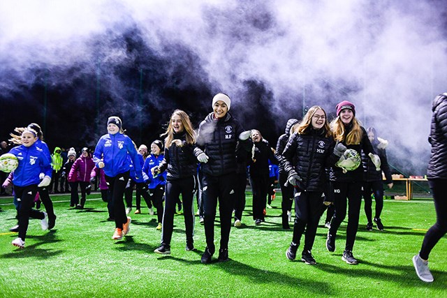 Politiker höll tal och det bjöds på fika. Men det var när tjejer från RIK Karlskoga och Bråtens IK sprang in tillsammans på planen som konstgräsplanen vid Kilsta IP blev officiellt invigd. Och därefter var det dags för träning. Spelare och ledare, kommunala tjänstemän, politiker och övriga intresserade hade under onsdagskvällen samlats vid Kilsta IP för att inviga konstgräsplanen. Kommunens utvecklingschef Kalle Selander var konferencier och intervjuade såväl politiker som spelare från de båda klubbarna. Efter alla tal och intervjuer var det så dags för den traditionella ”bandklippning” Den bestod i att spelare från RIK Karlskoga och Bråtens IK gemensamt sprang in på planen. Därmed var konstgräsplan på Kilsta IP officiellt invigd. Därefter bjöds det på fika och sedan körde några lag i gång att träna på planen. Kul!