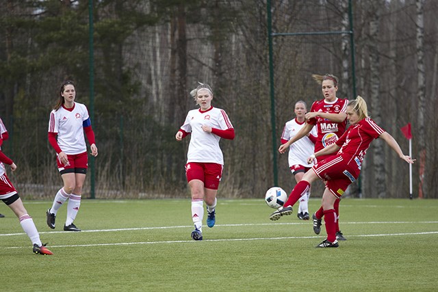 I en riktigt tuff match bärgade RIK Karlskoga tre nya poäng. 0-2 (0-1) slutade bortamatchen mot IK Gauthiod. Målskyttar Jade Flory och Hanna Sahlèn. Det var inget skönspel på Lunnevi IP utan det var kamp i 90 minuter. Och nyckeln till vinsten var en grym moral och stort hjärta. Tränare Ronny Spjuth var mycket nöjd när han efter slutsignalen pustade ut och summerade årets tredje seriematch. - Idag var det inget skönspel. Utan att vi vinner beror på att vi krigar bäst. Jag är verkligen imponerad av att tjejerna visar sådann moral inte viker ner sig en enda stund idag. Jade Flory lobbnickade över målvakten in ledningsmålet efter en dryg halvtimme. Passningen var en crossboll från Sara Lilja-Vidlund. Efter målet tog RIK Karlskoga tag i taktpinnen och var nära att öka på ledningen innan pausvilan. Men innan dessa hade Gauthiod haft ett övertag och pressat tillbaka gästerna. Ofta genom långa bollar och en väldigt hög press. Dessutom skapade de ett antal hörnor och frisparkar. I andra halvlek fortsatte RIK Karlskoga att ha ett spelövertag. Dessutom fick man medvind. Pigga Sara Lilja-Vidlund som fick kliva ner som yttermittfältare efter paus var nära att öka på ledningen. Men bollen satt i stolpen. McKenna Meuer blev bryskt nedtryck i straffområdet. Borde ha resulterat i en straffspark. Men signalen uteblev. Hemmalaget hade en riktigt vass chans till kvittering. Ett skott där Alexandra Blom gjorde en mycket kvalificerade räddning. Därutöver fanns endast ett läge till nätkänning för Gauthiod efter paus. Men denna dag lyckades de inte få någon boll i mål. Det gjorde dock RIK Karlskoga. Två gånger. Hanna satte spiken i kistan I minut 85 fick gästerna en hörnspark från höger. Jade Flory slår in bollen. Där kommer mittbacken Hanna Sahlèn och på volley trycker in bollen i nät. Lika snyggt som rättvist sett till hela matchen. RIK Karlskoga tilldelades tre gula kort. Ett av dessa fick Jessica Karlsson som därmed är avstängd i nästa seriematch. Dagens vinst innebär att RIK Karlskoga återfinns på andra plats i tabellen. Och det var främst kollektivet som segrade idag. Ända från Alexandra Blom mellan stolparna upp till forwards. Ett stort krigarhjärta från samtliga spelare gjorde att det blev tre nya poäng med hem i bussen. Redan på tisdag stundar en ny match för tjejerna. Då är det Svenska Cupen som gäller mot Örebro SK Söder hemma på Kilsta IP. Nästa seriematch är lördag den 13 maj på hemmaplan mot Töcksfors IF. Startuppställning Målvakt Alexandra Blom Backlinje Jenny Tropp, Hanna Sahlén, Madeleine Melander Mittfält Amandha Sjöberg, Viktoria Ström, McKenna Meuer, Jessica Karlsson, Rebecka Kristensen Anfall Sara Lilja-Vidlund, Jade Flory Avbytare Alva Jansson, Caroline Karlsson, Maja Andersson, Alexandra Sjölander, Nathalie Hallquist Målskyttar 0-1, Jade Flory (32) 0-2, Hanna Sahlèn (85) Byten (46) Rebecka Kristensen (ut) - Nathalie Hallquist (in) (63)) Viktoria Ström (ut) – Maja Andersson (in) (81) Amandha Sjöberg (ut) - Alva Jansson (in) Varning Jenny Tropp Jessica Karlsson Sara Lilja-Vidlund Domare Christer Johansson, (hd) Karin Gustafsson, (ad) Artan Buzolli, (ad) Publik 79