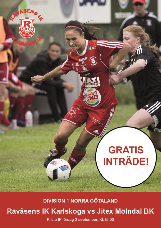 RIK Karlskoga återfinns på placering tre i tabellen. Denna helg står andraplacerade Jitex Mölndal BK för motståndet. En toppmatch i Division I Norra Götaland. Det är fri entré då sponsorer ger bidrag per åskådare. Det är helt klart upplagt för en härlig fotbollsfest på Kilsta IP på lördag eftermiddag. Förra året spelade klubben från Mölndal i Elitettan och man har en uttalad målsättning att snabbast möjligt återvända dit. Efter förlusten i senaste omgången mot Skövde tog dock Lidköping över förstaplatsen. Det är ändå helt klart en tuff motståndare som kommer till Karlskoga denna helg. Och i vårmatchen fick RIK Karlskoga inkassera en förlust. Men från tränarhåll andas en försiktig optimism. - Det är andra förutsättningar nu än vid matchen i maj månad. Vi har en bredare trupp nu och vi spelar på vår hemmaplan. Dessutom har vi sju raka vinster i serien och det är ingen slump att vi ligger där vi ligger, säger tränare Sonny Laurberg. Jitex är seriens målgladaste lag med sin 72 nätkänningar och vill gärna ha bollen mycket under matcherna. - Dom kommer nog att vilja föra matchen och är bollskickliga. Men vi har en bra defensiv och är farliga när vi går framåt, menar Sonny Laurberg. Förutom att så klart göra fler mål än motståndaren så vet tränaren vad som är framgångsfaktorer på lördag. - Vi måste tro på det vi gör och vara fokuserade. Vi ska spela smart, minimera risktagandet och våga gå framåt när det är rätt läge. Matchen marknadsförs som Åskådarpengen. Det innebär att det är gratis entré då sponsorer ger bidrag per åskådare. Så förhoppningsvis blir det storpublik och en riktigt bra fotbollsmatch på Kilsta IP. Truppen ser ut enligt följande: Lisa Andersson, Hanna Reinholdsson, Julia Johansson, Lydia Chodosh, Jenny Tropp, Alva Jansson, Jade Flory, Viktoria Ström, Rebecka Kristensen, Sofia Takamäki, Sara Lilja-Vidlund, Georgia Cloepfil, Hanna Andersson, Jessica Karlsson, Alexandra Blom Avspark 15.00, Rävåsens IK Karlskoga-Jitex Mölndal BK, Kilsta IP Läs vad Jitex Mölndal BK skriver inför matchen.