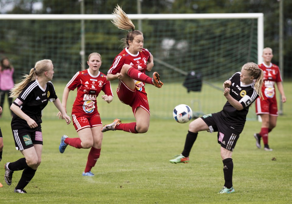 RIK Karlskoga version 2016 är ett lag som aldrig ger upp. Tidigt underläge på bortaplan mot Skövde KIK. Men när matchen var slut stod ändå tjejerna i rött som vinnare. 1-4 (1-1). Vinsten var främst en lagseger. Målskyttar var Sara Lija-Vidlund, Jade Flory och Georgia Cloepfil och dessutom ett självmål. Redan efter 4 minuter tog formstarka Skövde ledningen. En frispark från mittplan där en av deras jänkare mötte bollen i straffområdet och förpassadeden i mål. En chockstart som dock RIK Karlskoga hämtade sig från och efter 10 minuter kom kvitteringen. Och det var ett snyggt mål som var signifikant för matchen. Flera spelare var inblandade. Bråtenlånet målskytt direkt Vänsterbacken Sofia Takamäki drev bollen uppåt. Passade framåt till Georgia Cloepfil som satte fart framåt hittade Jade Flory i djupled. Hon in i straffområde och en passning till en fristående Sara Lija Vidlund som rullade bollen i nät. Resultat stod sig halvleken ut. I andra halvlek tröttnade hemmlaget märkbart och RIK Karslkoga fick övertag i såväl målprotokoll som spelmässigt. Nyförvärvet Lydia Chodosh nickade in ledningsmålet i början på andra halvlek - trodde samtliga närvarande. Men dagens rättskiparen Jusuf Bicoli hittade någon form av regelbrott i straffområdet och inget mål. Det kom istället när matchklockan stod på 64 minuter. Pigga Jade Flory sprintade upp efter vänsterkanten. Passning snett inåt bakåt till Georgia Cloepfil och det stod därefter 1-2 på resultattavlan. Innan målet hade även Jade ett friläge där Skövdes målvakt räddade. 1-3 var ett självmål där en hemmaspelare nickade bollen i egen målbur på ett långt inkast från Jade Flory. Lite smolk i glädejbägare denna kväll i Skövde var att Jessica Karlsson tilldelade ett gult kort. Vilket betyder att hon är avstängd nästa match. Jade avslutade med projektil Alexandra Blom gjorde åter en stabil instas mellanstoplaren och gjorde en grymt svettig räddningen med kvarten kvar. Det var också hemmlaget bästa läge för nätkänning efter paus. Spiken i kistan kom efter 80 minuter. Och det var riktigt grannlåt. Jade Flory avlossade en projektil upp i krysset hos hemmamålvakten till 1-4 vilket också blev slutresultat på Södermalms IP. Tre nya värdefulla poäng och detta efter en riktigt bra laginsats av RIK Karlskoga. "härlig moral och fysisk styrka" Tränare Sonny Laurberg var mycket nöjd med vinsten mot Skövde och betonade verkligen detta var en laginsats som gjorde det möjligt. - Vi gör det fantastiskt bra idag. Även om vi hamnar i ett underläge så visar vi med vår härliga moral och fysiska styrka att vi är riktigt bra. Och det har vi visat i flera matcher. Vi släpper bara in ett mål idag och det känns bra. Riktigt kul var det också att vi kunde mönstra ett så bra lag idag och visar att vi verkligen skakat av oss vårens bortaspöke,, säger Sonny Laurberg. I tabellen betyder de tre poängen att RIK Karlskoga tar ett kliv upp på fjärdeplats. Nästa match är på hemmaplan den 6 augusti mot IK Rössö Uddevalla. Startuppställning Målvakt Alexandra Blom Backlinje Amandha Sjöberg, Hanna Andersson, Jessica Karlsson, Sofia Takamäki Mittfält Sara Lilja-Vidlund, Jenny Tropp, Lydia Chodosh, Viktoria Ström, Georgia Cloepfil Anfall Jade Flory Ersättare Lisa Andersson, Julia Johansson, Hanna Reinholdsson, Alva Jansson, Rebecka Kristensen Målskyttar 1-0, Charlotte Owens Beach (4) 1-1, Sara Lilja-Vidlund (10) 1-2, Georgia Cloepfil ( 64) 1-3, självmål (73) 1-4, Jade Flory (80) Varning Jessica Karlsson, Viktoria Ström och Georgia Cloepfil. Domare Jusuf Bicoli (hd) Alen Turcinhodzic (ad) Adam Lind (ad)