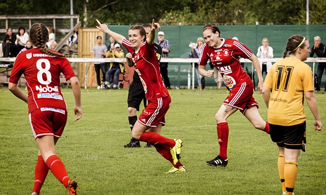 Ställningen var 2-2 efter 45 minuter. Då var ingen nöjd i RIK Karlskoga. Men när matchen RIK Karlskoga-Skepplanda BTK blåstes av stod det 7-2 (2-2) på resultattavlan. Då var det mungiporna uppåt i hemmalaget. - Vi tar inte kampen och jobbar inte för varandra i första halvlek. Vi föll också in i Skepplandas tempo. Men i andra halvlek spelar vi som jag vill att vi ska göra. Vi vinner med 7-2 och det kunde lika gärna varit 10-2, säger tränare Sonny Laurberg efter vinsten mot Skepplanda. Det var bara en duktig målvakt i bortalaget och stundtals viss oskärpa i avsluten som gjorde att segersiffrorna inte blev större. För i andra halvlek dominerade RIK Karlskoga fullständigt mot seriejumbon Skepplanda BTK. Förutom en boll i ribban hade gästerna inte någon målchans efter paus. Hemmalaget däremot skapade mängder av chanser. Främst genom duon Jade Flory och Georgia Cloepfil. Det var också ett samarbete mellan jänkar som låg bakom dagens första mål. Inlägg från Georgia som Jade nickade in. Då stod matchklockan på 10 minuter. Skepplanda kvitterade efter en kvart men ett skott från Jessica Karlsson som började matchen som anfallare för att sedan kliva ner på mittfältet gav hemmalaget åter ledningen. Gästerna kvitterade och ställningen var 2-2 i paus. Urladdningen i andra halvlek Inför andra halvlek gjorde ett antal positionsbyten. Förutom att Jessica klev ner på mittfältet, tog Amandha Sjöberg steget ner på högerbacken. Alva Jansson upp på höger yttermittfält och Georgia Cloepfil tog plats i anfallet. Och det gav resultat. RIK Karlskoga hade 11 hörnor. Samtliga från Jade Florys högerfot och det var något som gav utdelning. Både 3-2 och 5-2 nickade Georgia i nät efter hörnspark från landsmaninnan. Jessica Karlsson gjorde 4-2 efter att snyggt chippat in bollen. 6-2 stod Jade Flory för efter en snabb omställning. Georgia Cloepfil avslutade målkalaset genom att göra 7-2 efter 90 minuter. Tre nya poäng gör att RIK Karlskoga ligger på fjärde plats i serietabellen efter sex spelade omgångar. Härnäst väntar Jitex Mölndal BK på bortaplan den 28 maj. Och det är spelet i andra akten som tjejerna ska bära med sig ner till förorten i Göteborg nästa helg. - Vi gör sju mål och tar tre poäng. Vi kunde dock ha varit mer skärpta i avsluten. Men vi vinner och det är jag mycket nöjd med. Mot Jitex i nästa omgång väntar ett helt annat motstånd. Då gäller det att vi spelar från start som vi gjorde i andra halvlek idag, avslutar Sonny Laurberg. Startuppställning Målvakt Lisa Andersson Backlinje Alva Jansson, Hanna Andersson, Hanna Reinholdsson Rebecka Kristensen Mittfält Georgia Cloepfil, Amandha Sjöberg, Jenny Tropp, Rebecka Stålhammar Anfall Jade Flory, Jessica Karlsson Avbytare Malin Hagvall, Emma Sahlström Julia Johansson, Sanna Carlsson Målskyttar 1-0, Jade Flory (10) 1-1, Skepplanda (15) 2-1, Jessica Karlsson (18) 2-1, Skepplanda (20) 3-2, Georgia Cloepfil (51) 4-2, Jessica Karlsson (57) 5-2, Georgia Cloepfil (78) 6-2, Jade Flory (85) 7-2 Georgia Cloepfil (90) Byten? 26, Rebecca Stålhammar (ut) Emma Sahlström (in) 83, Alva Jansson (ut) Malin Hagvall (in) Domare Albin Jakobsson, Karlstad (hd) Denis Sekula, Karlstad (ad) Gia Kucher Soro, Karlstad (ad) Publik 169