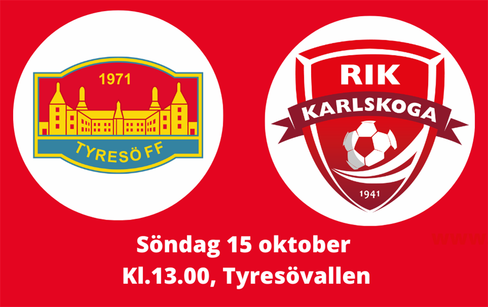 Division 1 Mellersta har kommit fram till omgång 23. För RIK Karlskoga innebär det bortamatch mot Tyresö FF på söndag. Avspark klockan 13.00 på Tyresövallen. - Vi gjorde ingen bra match i förra omgången mot Hertzöga. Nu ska vi visa att vi kan så mycket bättre. Tyresö är starka på sin hemmaplan och kommer med en seger mot ÖSK i ryggen. Om vi ska kunna rubba dem måste vi vara aggressiva i duellspelet, beslutsamma i passningsspelet och fokuserade vid fasta situationer och öka vår kommunikation på planen, säger tränare Dennis Fransson. Truppen till matchen ser ut enligt följande: Lova Sandahl, Wera Helsing, Jenny Tropp, Stella Lambertsson, Ida Lilja, Wilma Linder, Leia Laukkanen, Sara Öjebo, Kasama Umkrieu, Wilma Holgersson, Sofia Ingvarsson, Helin Faraj, Alwa Linder och Elin Ekmark.
