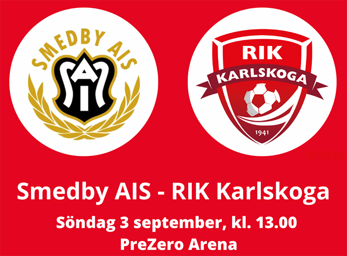 Även denna helg är det bortamatch för RIK Karlskoga. För motståndet på söndag står Smedby AIS. Avspark klockan 13.00 på PreZero Arena. Norköpingslaget återfinns på andra plats i tabellen med samma poäng som serieettan Örebo SK FK. I förra omgång tog Smedby tre poäng på bortaplan mot Degerfors efter att vänt underläge till seger i matchens slutskede. RIK förlorade med uddamålet mot Enskede på bortaplan i samma omgång. Matchen Smedby AIS-RIK Karlskoga ingår i omgång 18. I RIK är Lova Sandahl åter. Sara Öjebo saknas på grund av sjukdom. På skadelista finns Saga Olsson, Ann-Sofie Gripenberg, Matilda Wästberg, Fanny Ringman och Hanna Sahlén. Truppen till matchen ser ut enligt följande: Nora Sennerblom, Lova Sandahl, Wera Helsing, Elsa Hellgren, Jenny Tropp, Stella Lambertsson, Ida Lilja, Nathalie Bergman, Leia Laukkanen, Wilma Forsberg, Nimcon Abdulkader Sheik Hussein, Wilma Holgersson, Helin Faraj, Sofia Ingvarsson och Elin Ekmark. Matchen sänds på Smedby AIS Play