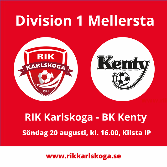 Division 1 Mellersta har kommit fram till omgång 16. För RIK Karlskoga gäller hemmamatch mot BK Kenty söndag 20 augusti. Avspark klockan 16.00 på Kilsta IP. - Även om vi förlorade mot ÖSK i serien och Eskilstuna i Svenska Cupen under veckan så tycker jag att vår formkurva går åt rätt håll. Nu möter vi ett Kenty som också är på uppåtgående och likt oss jagar poäng. Det kommer säkerligen att bli en tuff drabbning på Kilsta. Viktigt för oss på söndag är att varje spelare vinner sin match i matchen, att vi tar för oss i duellspelet och tar vara på de chanser vi får samt inte släpper fokus innan domaren blåser av matchen, säger tränare Dennis Fransson. När lagen möttes i april slutade matchen 3-3. Kenty återfinns på plats 14 i tabellen och RIK på plats 12. I förra omgången föll Linköpingslaget mot Smedby med 0-1 och RIK mot Örebro SK FK med uddamålet på hemmaplan. Truppen ser ut enligt följande: Lova Sandahl, Wera Helsing, Elsa Hellgren, Johanna Fridlund, Stella Lambertsson, Ida Lilja, Nissa Pereira, Nathalie Bergman, Alma Ahl, Wilma Linder, Wilma Forsberg, Sara Öjebo, Saga Olsson, Helin Faraj och Elin Ekmark.