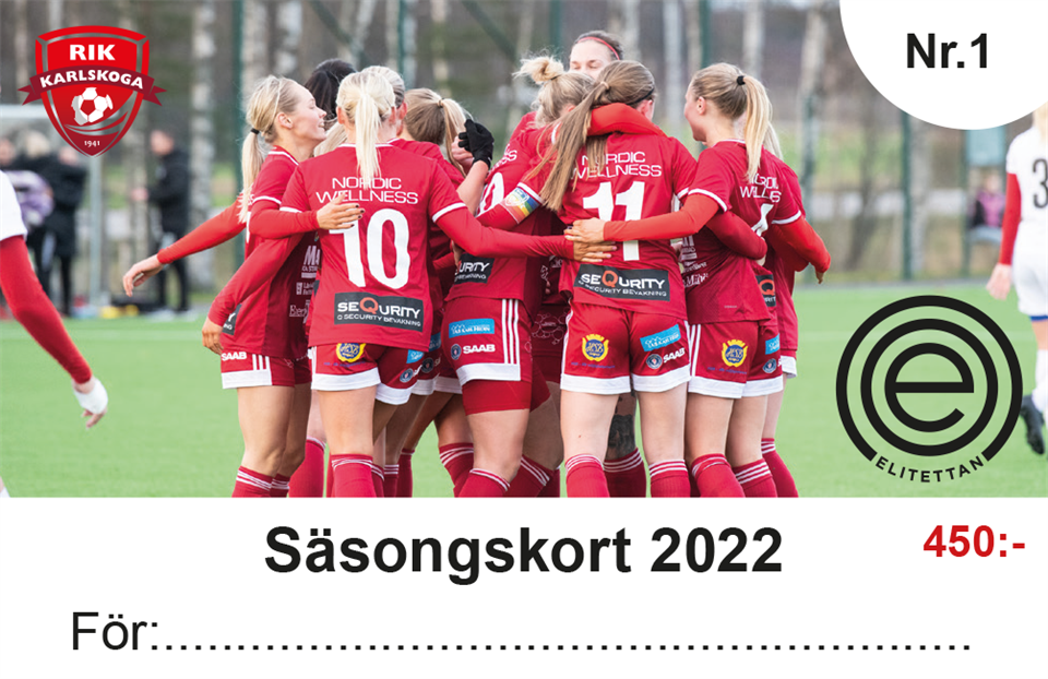 Säsongen 2022 får du avnjuta elitfotboll på Kilsta IP. För endast 450 kronor får du ett säsongskort som förutom 13 matcher i Elitettan gäller till föreningen alla lags hemmamatcher. Dessutom har alla innehavare av säsongskort chans att vinna en tv eller presentkort på ICA Maxi i Karlskoga. Ett säsongskort kostar endast 450 kronor och då ingår fri entré till alla hemmamatcher 2022. Efter säsongen genomförs också en utlottning bland innehavarna av säsongskort då man har chans att vinna en tv eller presentkort på ICA Maxi i Karlskoga. För att beställa ditt säsongskort ringer du 073-92 56 517 eller 070-7109307 eller mailar till kansli@rikkarlskoga.se